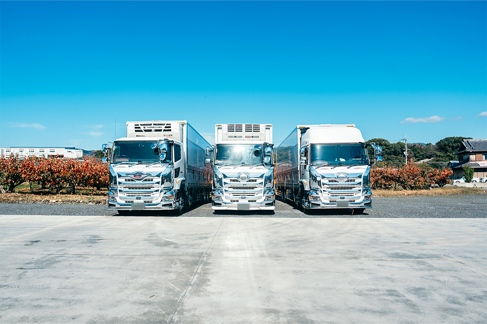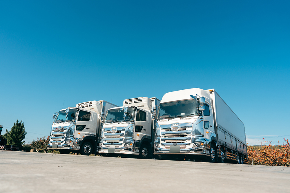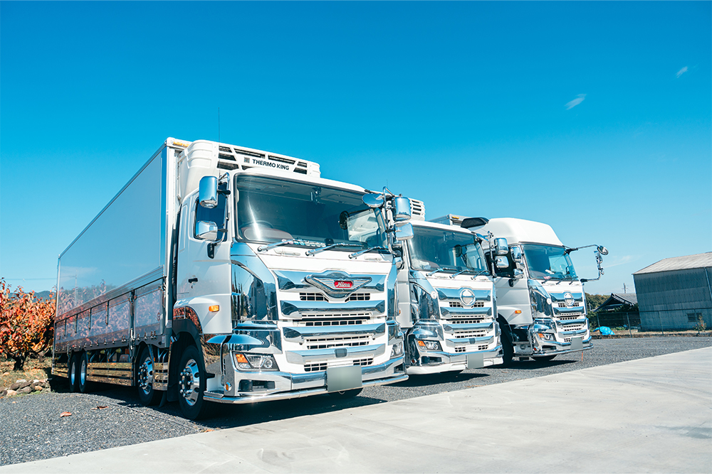 和歌山県紀の川市の有限会社大興関流では、青果(輸入青果物)・生花・一般貨物の運送にあたり、自社で保有している大型トラックおよびトレーラーを使用しております。こちらのページでは、弊社が保有している車両についてご紹介します。 ただいま長距離大型ドライバーを求人募集中です。これらの大型車両を運転しての運送業務をお任せします。ご応募をお待ちしています。
